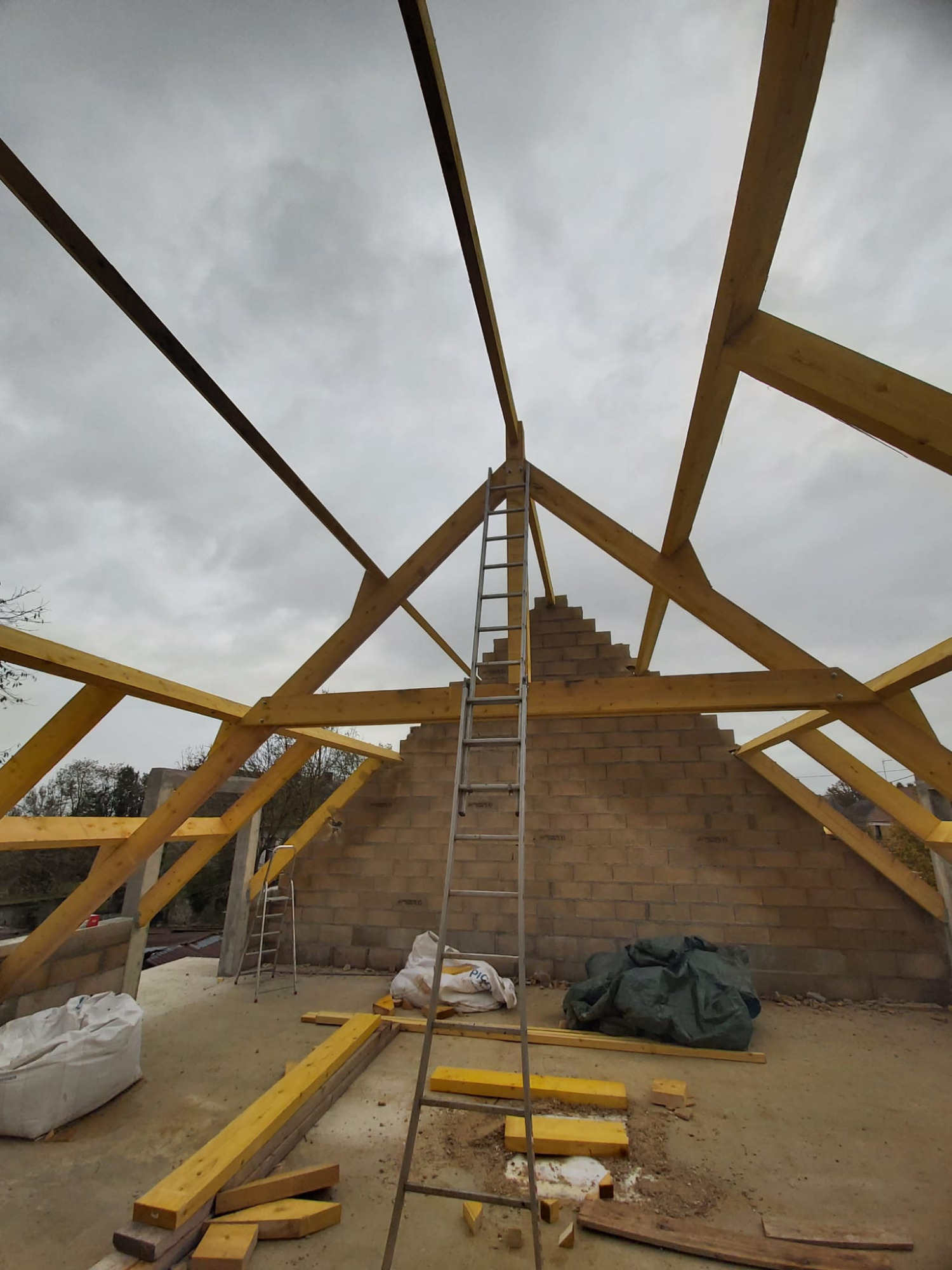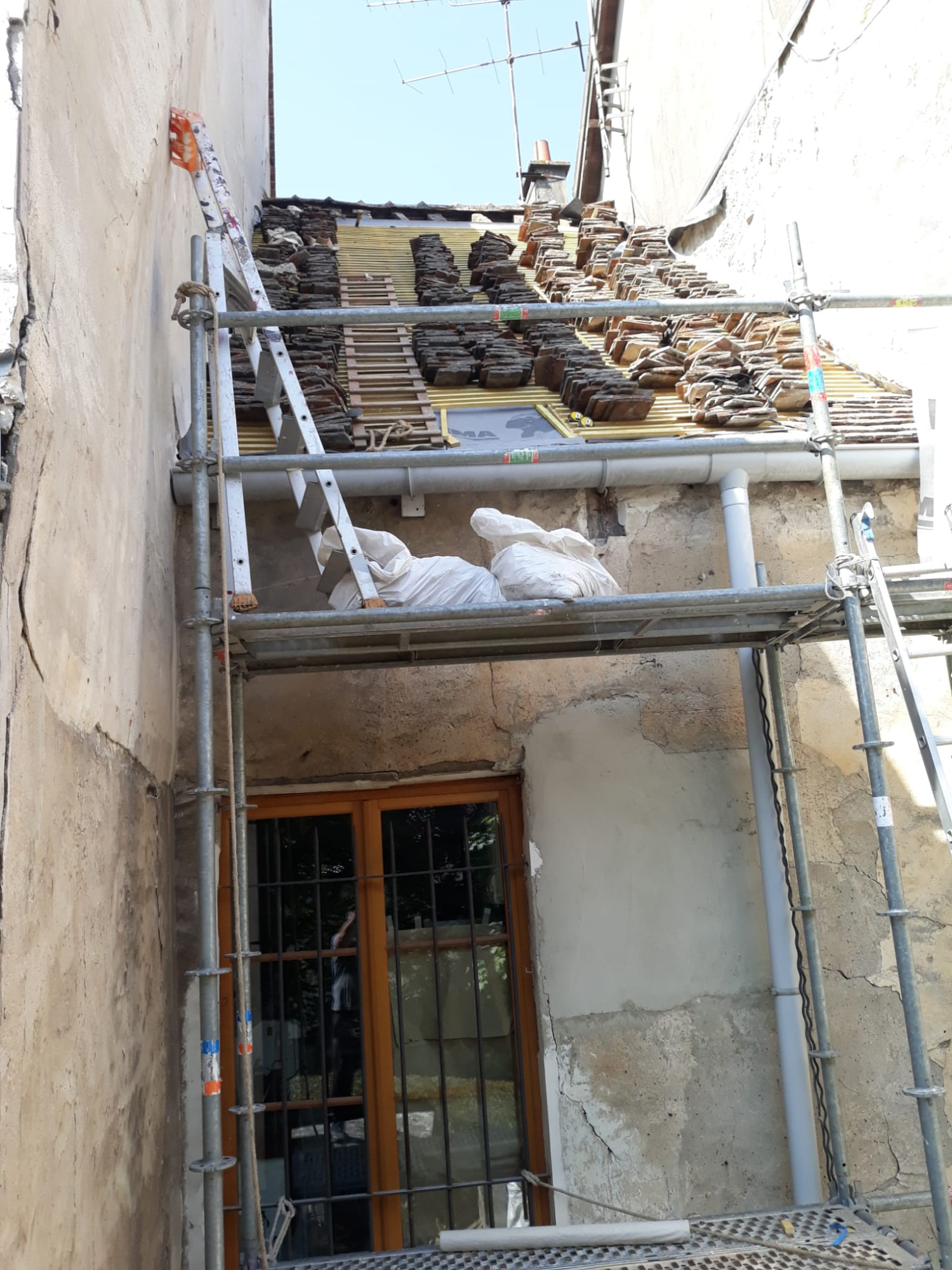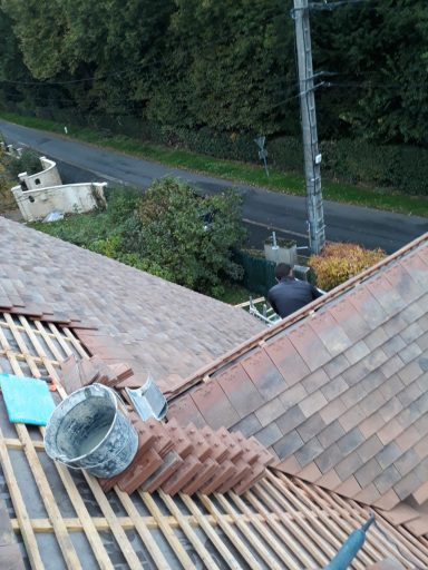 Derniers travaux de couverture, charpente, étanchéité cheminée.